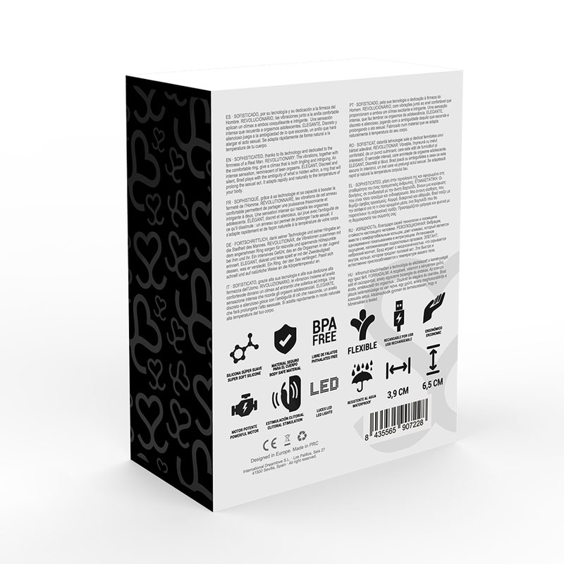 • Brad è facile da posizionare grazie al suo anello flessibile, basta posizionare Brad alla base del pene e attivare la rotazione utilizzando il pulsante superiore, che fornisce in modo unico la stimolazione del clitoride.